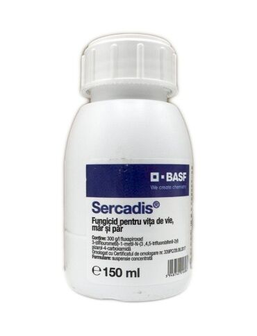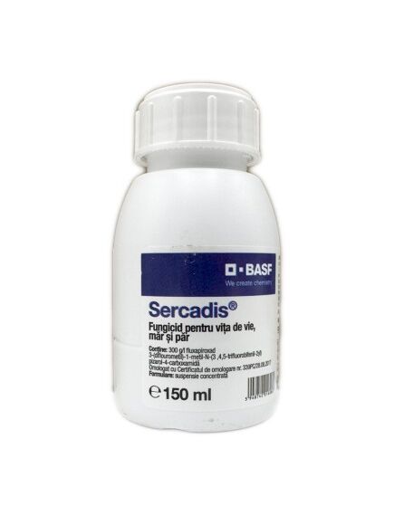 Fungicidul SERCADIS contine 300 g/l Fluxapiroxadsi se prezinta sub forma de suspensie concentrata, avand actiune translaminara si activitate acropetala care conduc la o protectie uniforma a culturii. Produsul se remarca datorita eficacitatii excelenta in combaterea fainarii la vita de vie, a rapanului si fainarii la mar si par. Astfel, utilizand acest produs in timpul perioadei de vegetatie, preventiv sau curativ, va asigurati culturi protejate pe perioade indelungate, in care calitatea productiilor nu va fi afectata, datorita structurii moleculare unice de unde rezulta o mobilitate deosebita a substantei active in interiorul plantei.