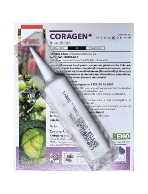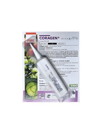 CORAGEN insecticid cu activitate sistemică locală și translaminară care activează receptorii rianodinei, stimulând eliberarea ionilor de Ca++ din depozitele interne ale mușchilor netezi și striaţi ai insectei, fapt ce determină paralizia mușchilor, controlul defectuos al mișcărilor, letargie generală, imobilitate, căderea de pe frunze și, în final, moartea dăunătorului.