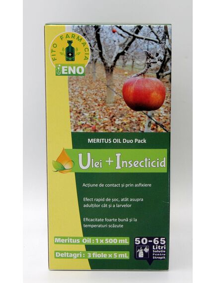 Pachetul DUO MERITUS OIL + DELTAGRI este o combinație eficientă între ulei horticol și insecticid de contact, special formulată pentru tratamentele de iarnă și de repaus vegetativ ale pomilor fructiferi.