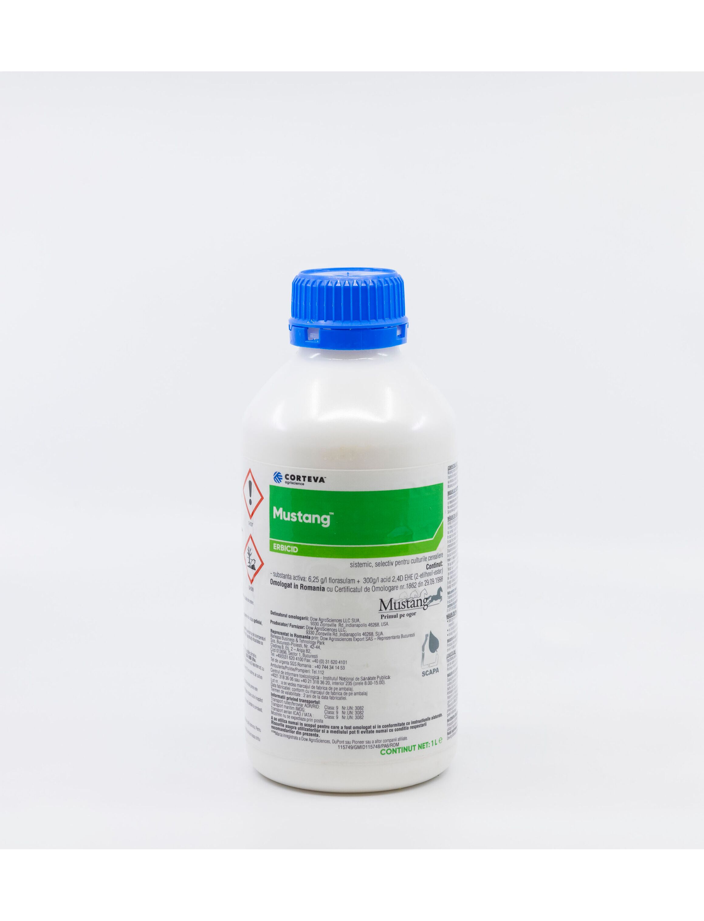 Mustang, erbicid sistemic, selectiv, care actioneaza asupra buruienilor dicotiledonate anuale si perene din culturile cerealiere.