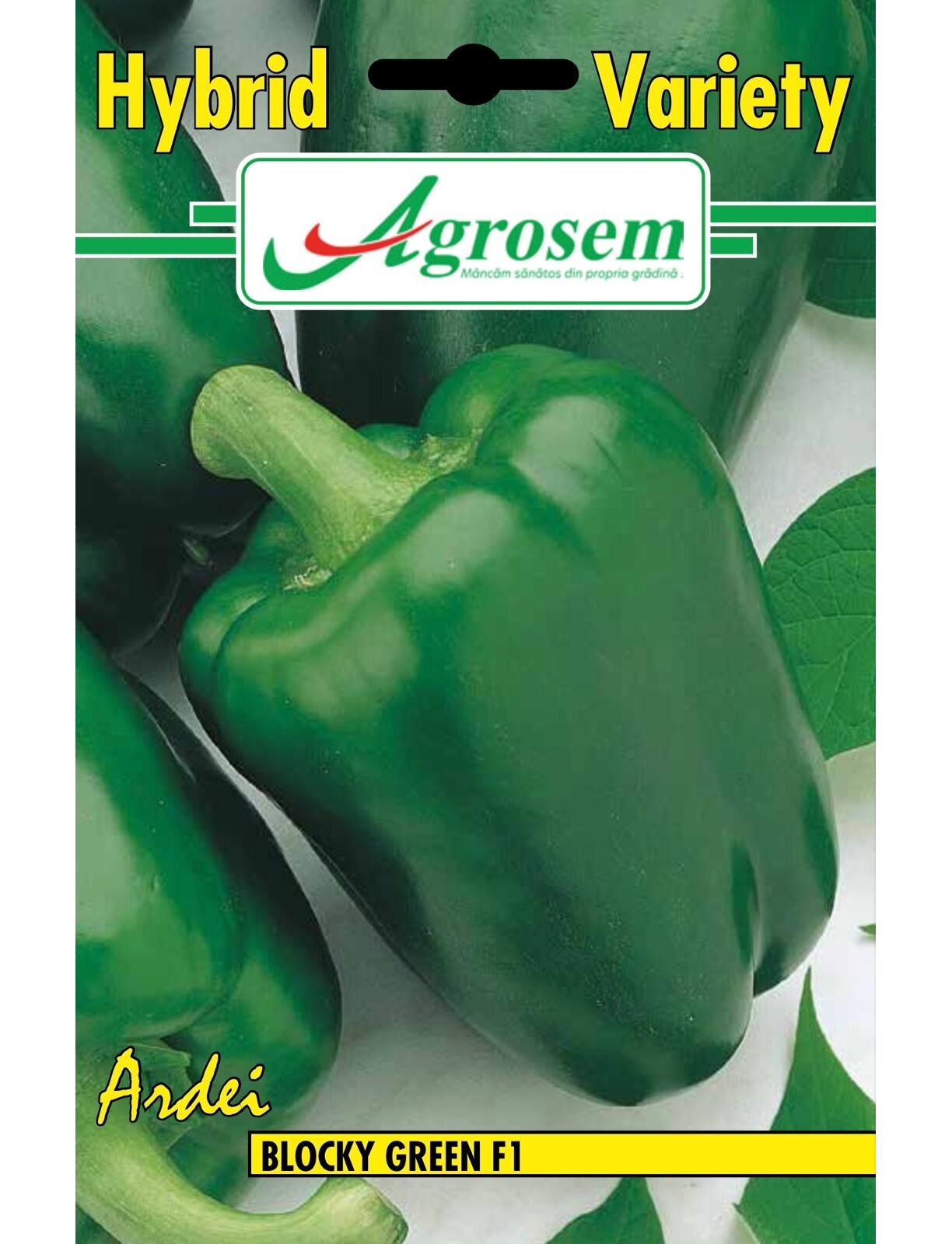 Blocky Green F1 este un hibrid de ardei gras cu fructe mari, de tip blocky, cu formă regulată și pereți groși. Fructele au culoare verde intens, lucioasă, cu aspect comercial excelent și rezistență bună la manipulare și transport.