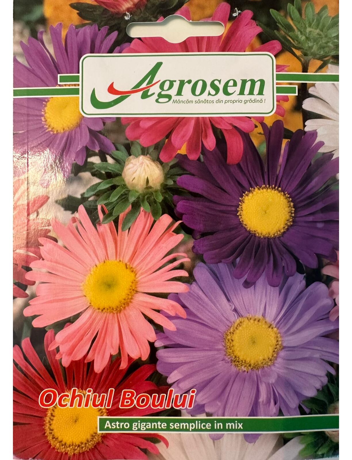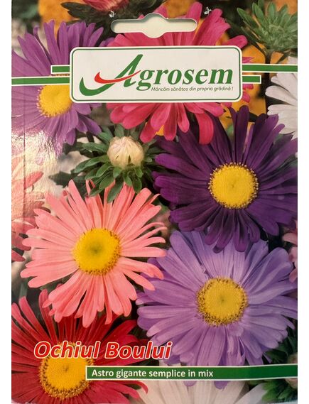 Ochiul Boului (Aster) este o plantă anuală decorativă, cu flori mari, simple, de tip margaretă, în culori vii și variate – roz, mov, violet, alb, roșu și combinații atractive. Plantele au port erect, bine ramificat, fiind ideale pentru straturi florale, ronduri, borduri și ca flori tăiate. Se remarcă prin înflorirea abundentă și aspectul decorativ deosebit pe tot parcursul verii.