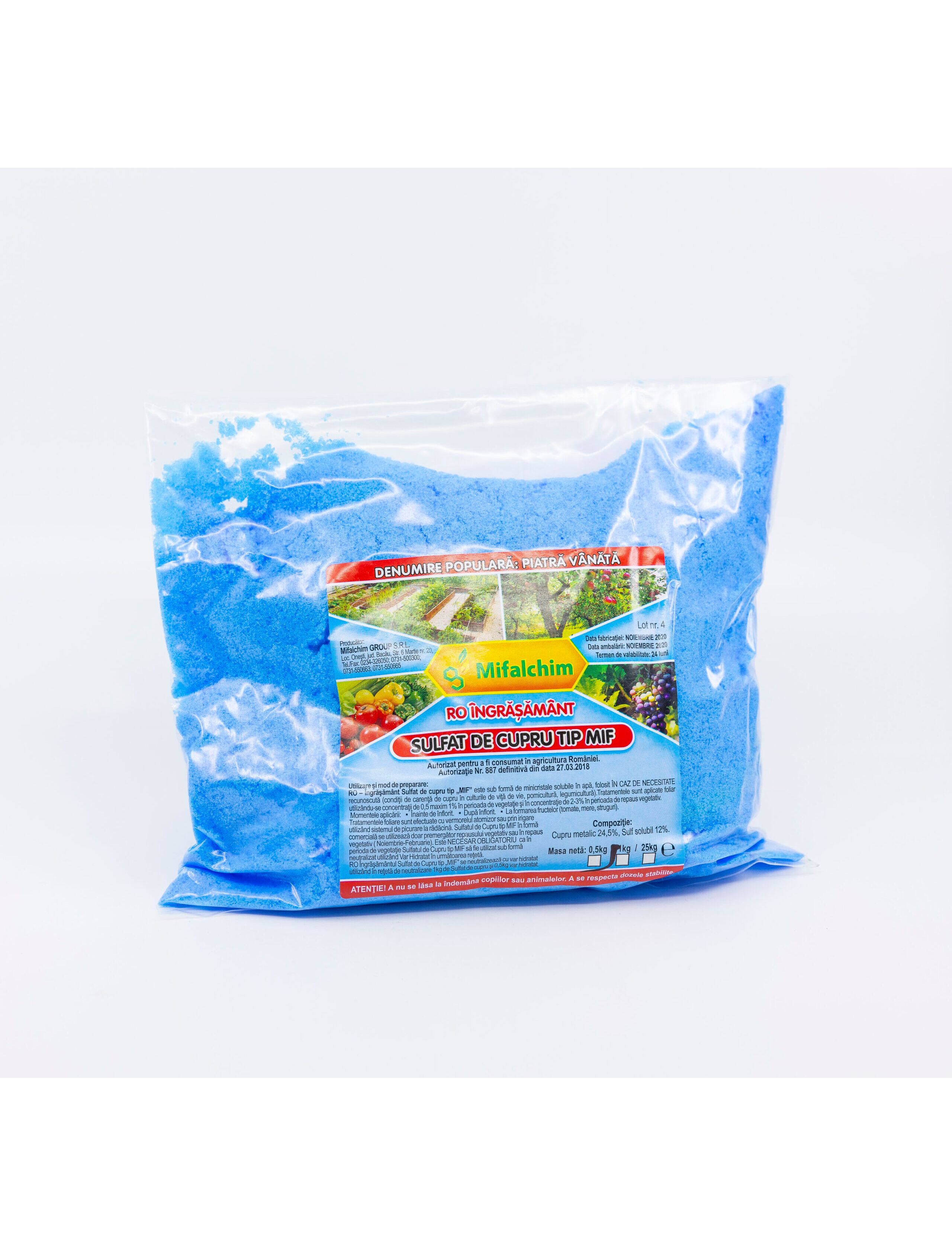 Produs de uz agricol (denumire populară piatră vânătă) ce conține ca microelemente 24,5% Cupru, 11.5% Sulf, 1% Lauril Sulfonat de Sodiu ce este destinat eliminării carenței de Cupru, carență ce duce la dezvoltarea de diverse boli foliare precum mana și putregaiul cenușiu în culturile de viță de vie și pomicultură, mana în legumicultură, speciile floricole precum Phylodendron, Ficus benjamina, Pelargonium grandiflorum și arbori ornamentali.